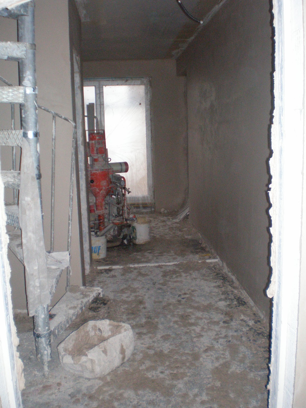Die Wände trocknen währenddessen, was momentan ein lustiges scheckiges Muster ergibt.